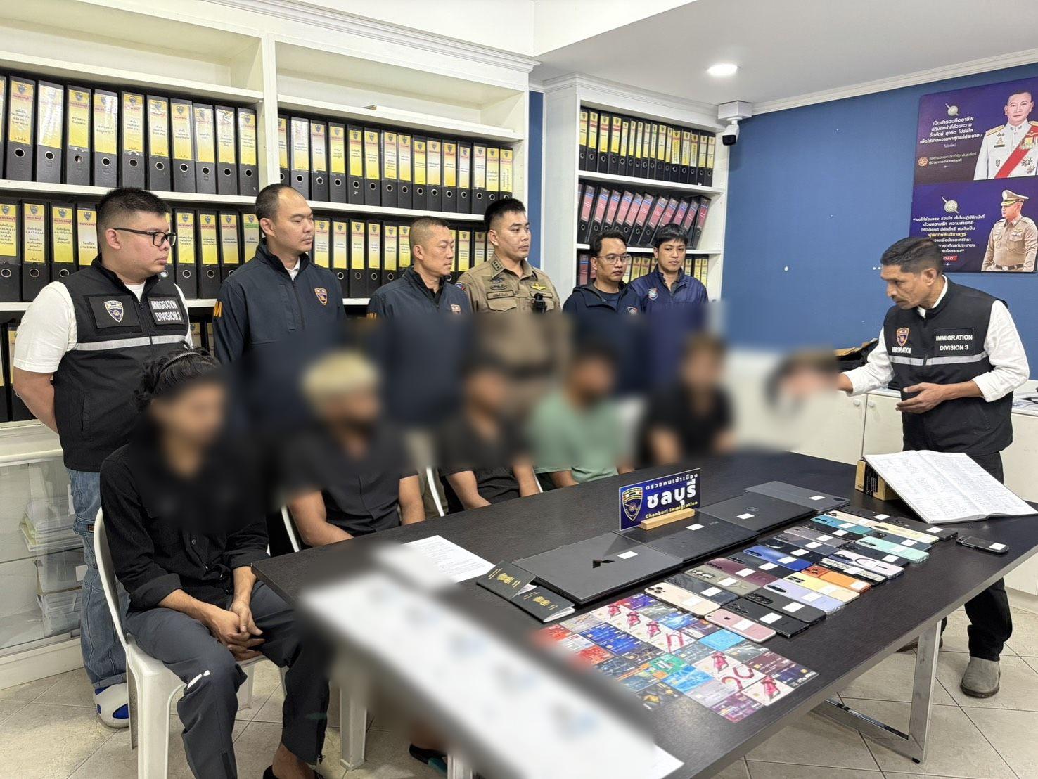 Mercredi soir, la police de l'immigration a fait irruption dans un immeuble de luxe du centre de Pattaya et a arrêté cinq hommes indiens soupçonnés d'agir comme administrateurs de sites de jeux d'argent illégaux offshore, avec des transactions financières s'élevant à des millions de bahts.